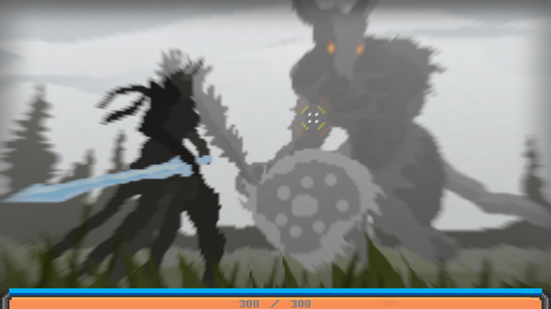 Stress-free Lasso tool -art, most assets drawn in under 1 minute (except the Hero and Monster). Highly inspired by an old retro MMORPG: Blade Mistress. A custom font drawn by the developer was also used.